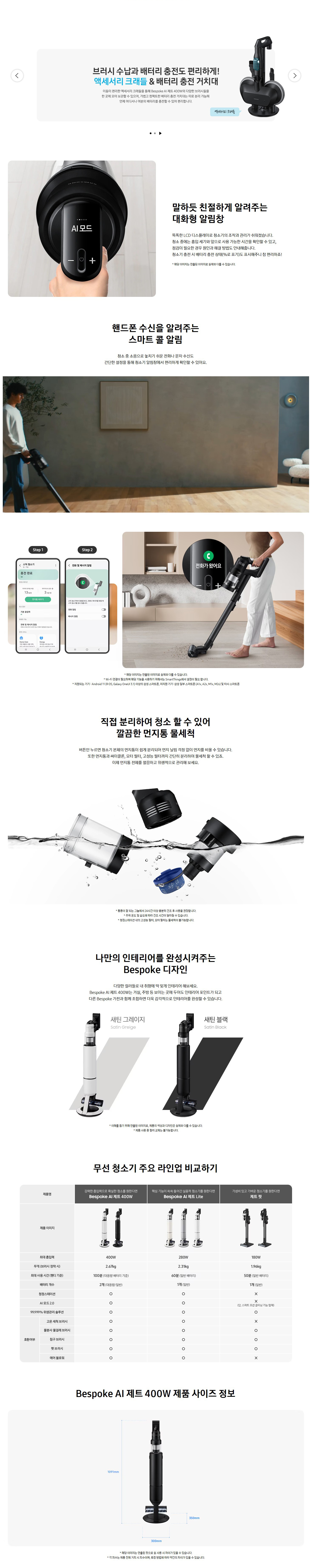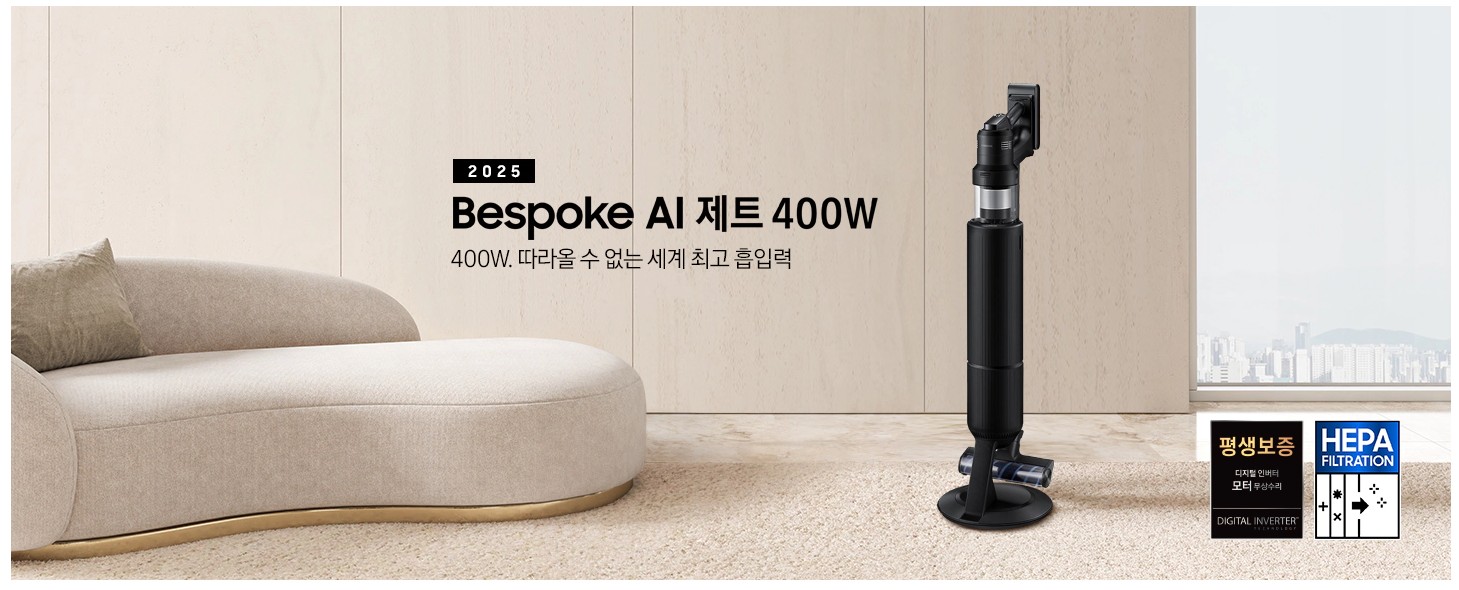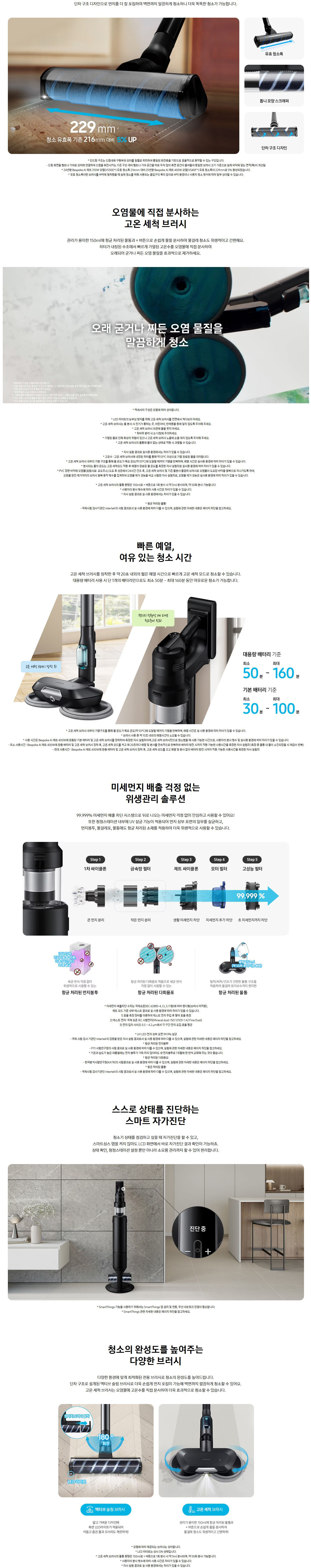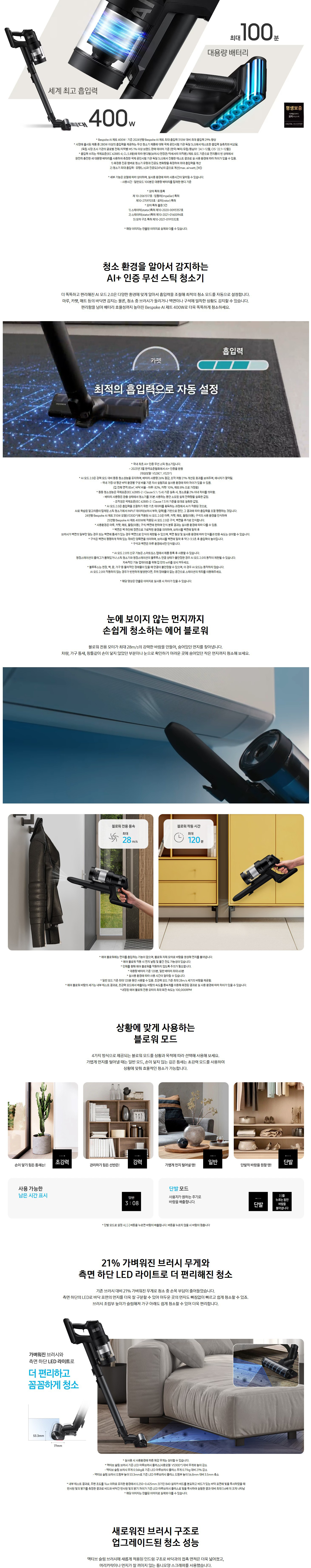 삼성의 특허 기술로 제작된 초경량 모터를 탑재해 가벼우면서도 흡입력은 기존 대비 29% 향상되어 강력한 청소가 가능합니다.