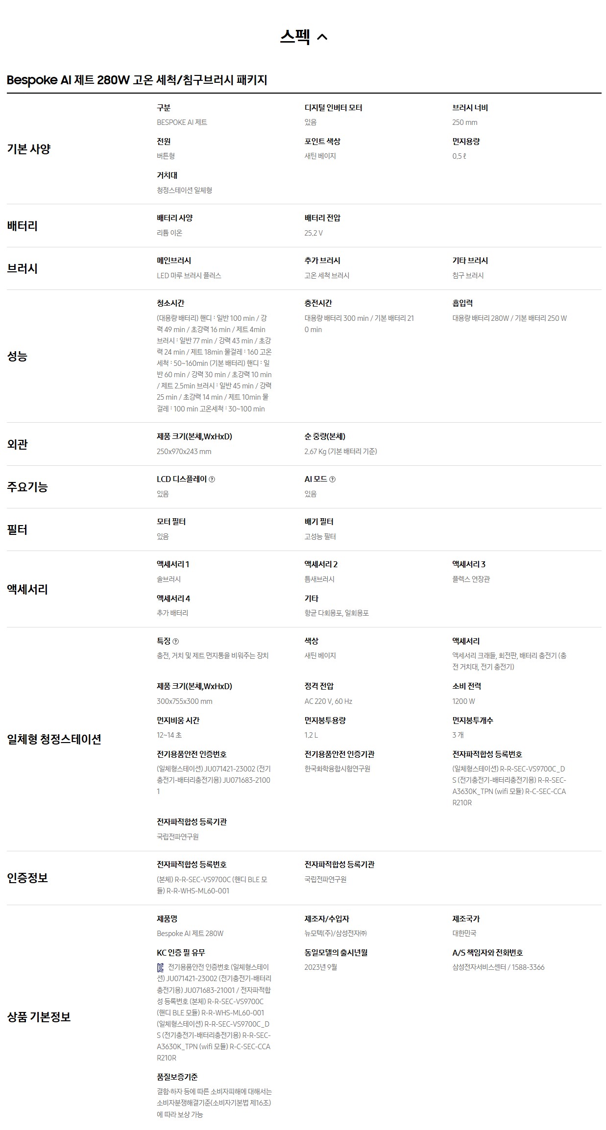 [진열]삼성 BESPOKE 제트AI 무선청소기 280W VS28C973ISE