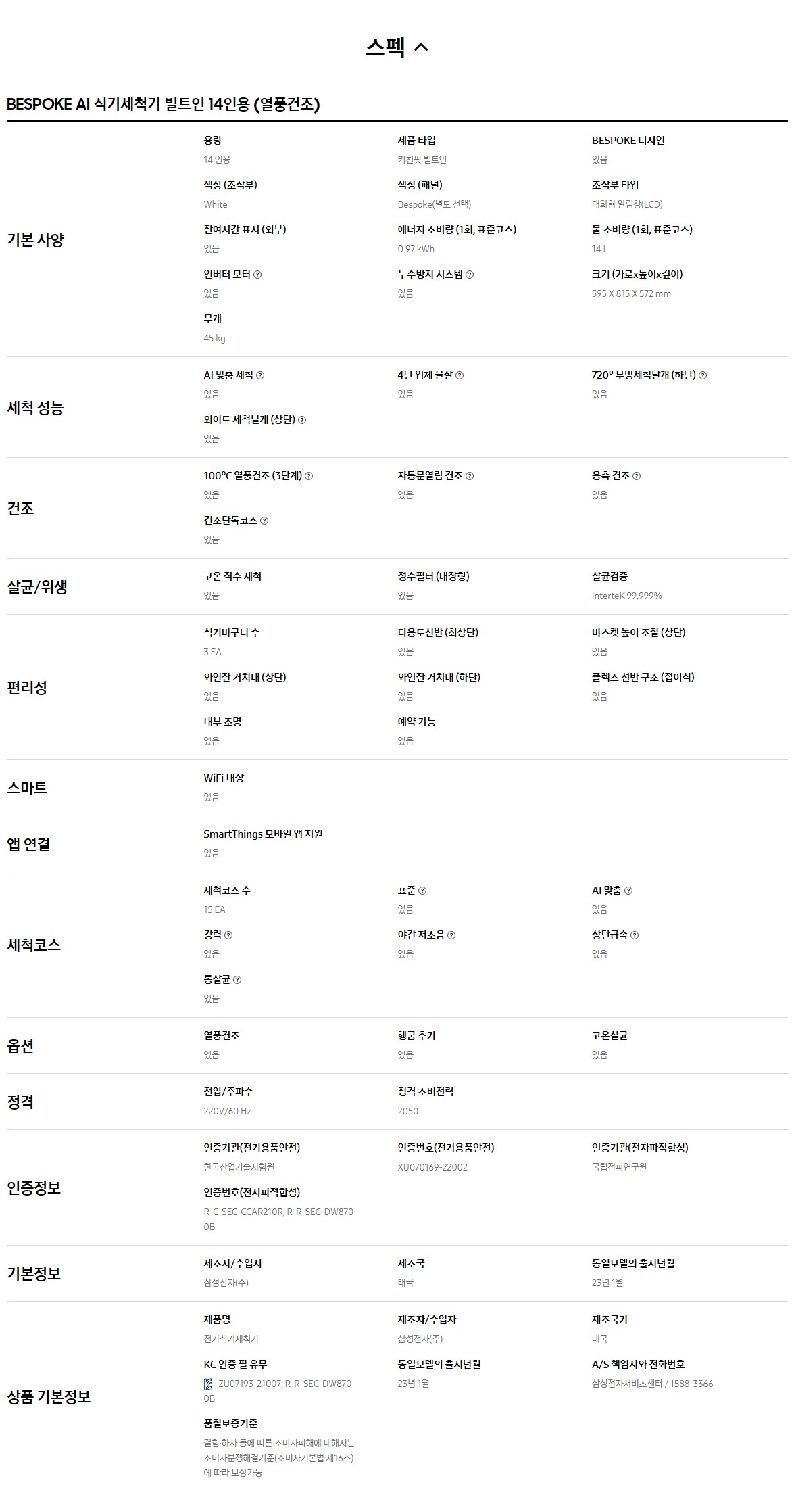 삼성전자 비스포크 식기세척기 DW60BB837WAP