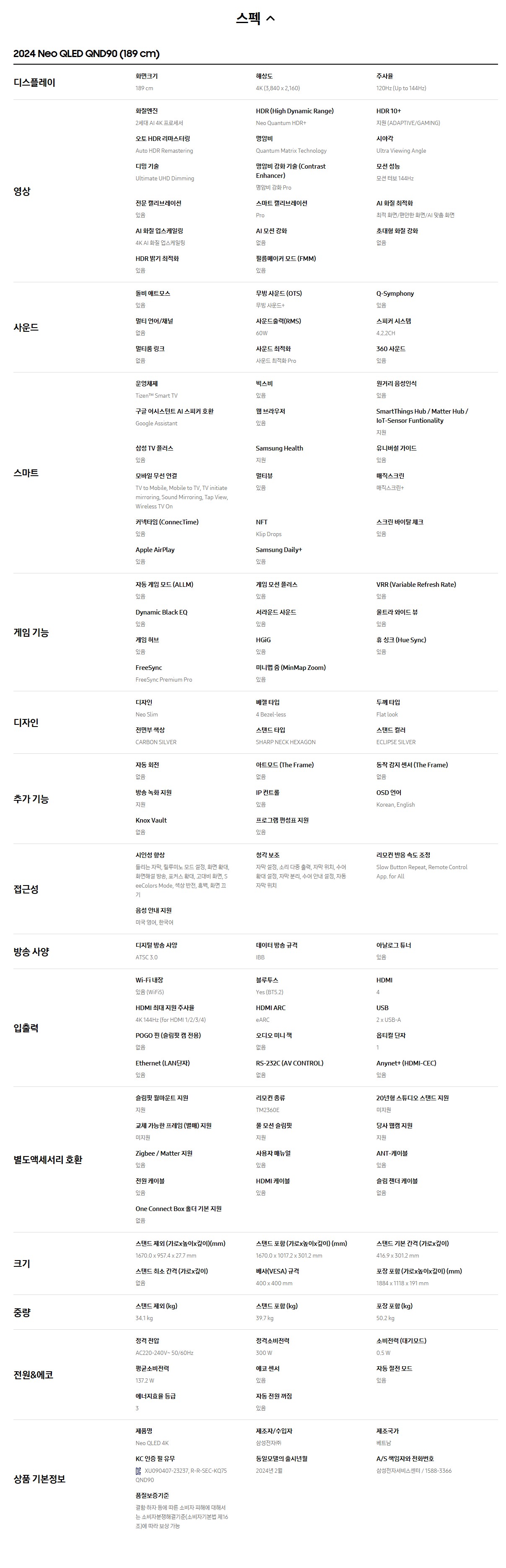 [진열]삼성전자 75인치 네오QLED KQ75QND90AFXKR [스탠드/벽걸이 선택]