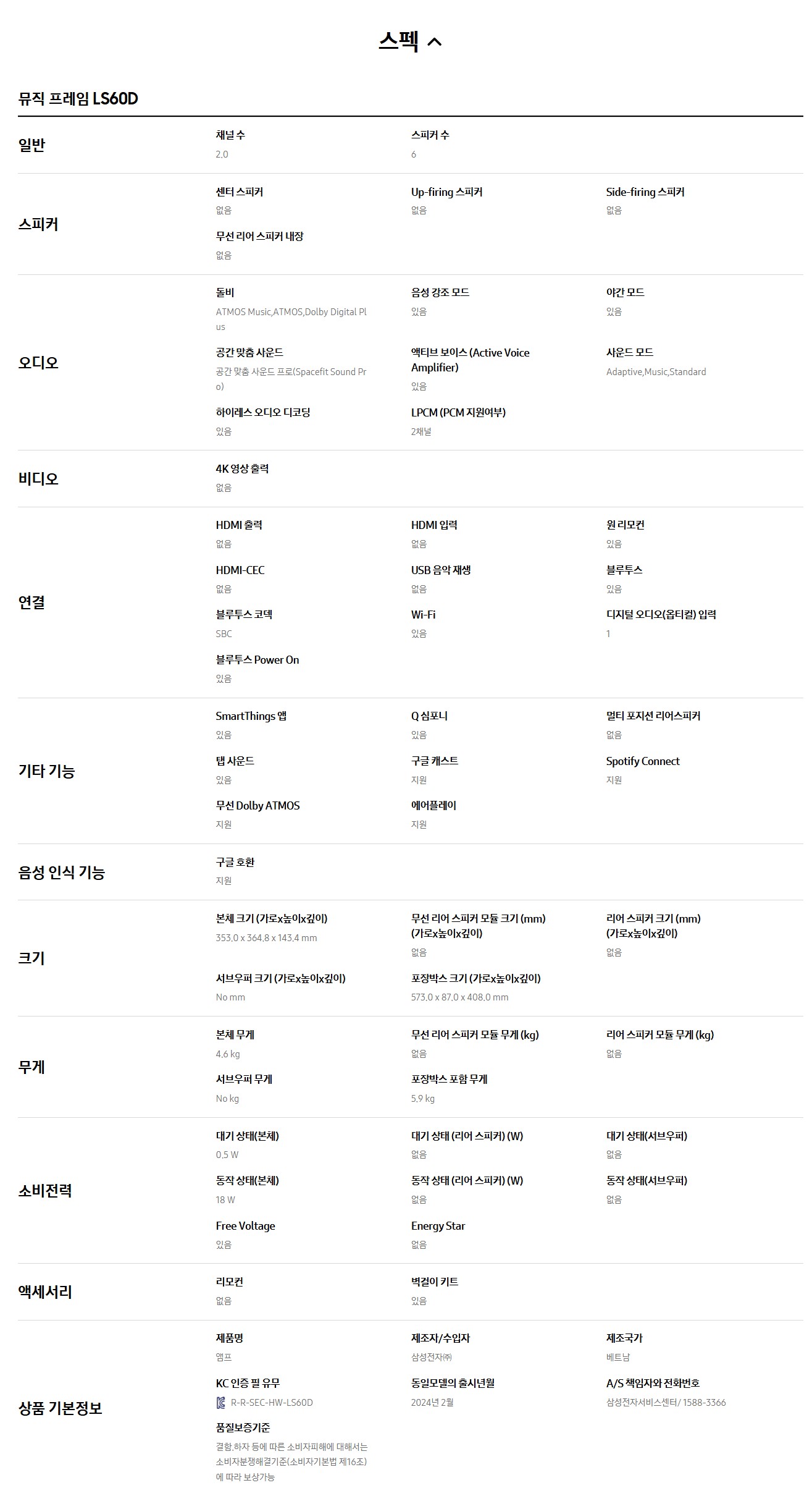 [진열]삼성 블루투스 스피커 뮤직프레임 HW-LS60D/KR 액자형 커스텀 Wi-Fi