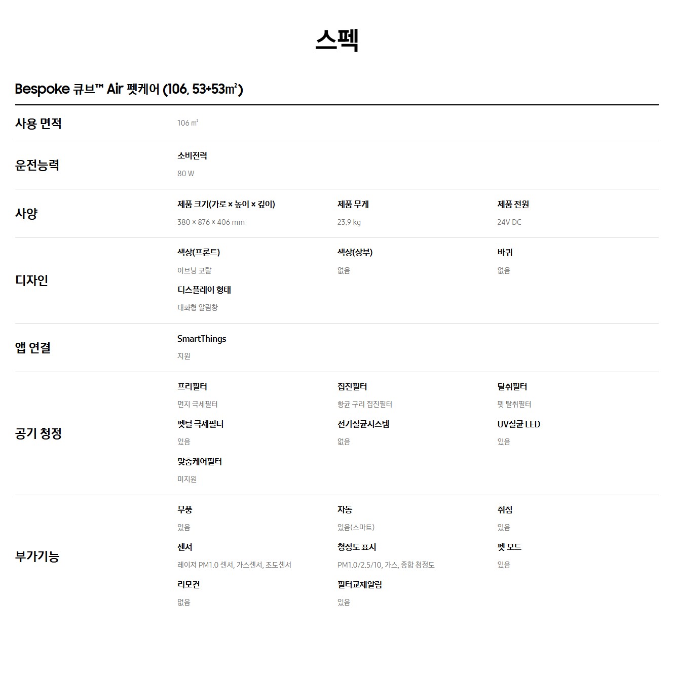 [Mega Sale][진열]삼성 비스포크 큐브 Air 공기청정기 32평형 AX106B850HSD