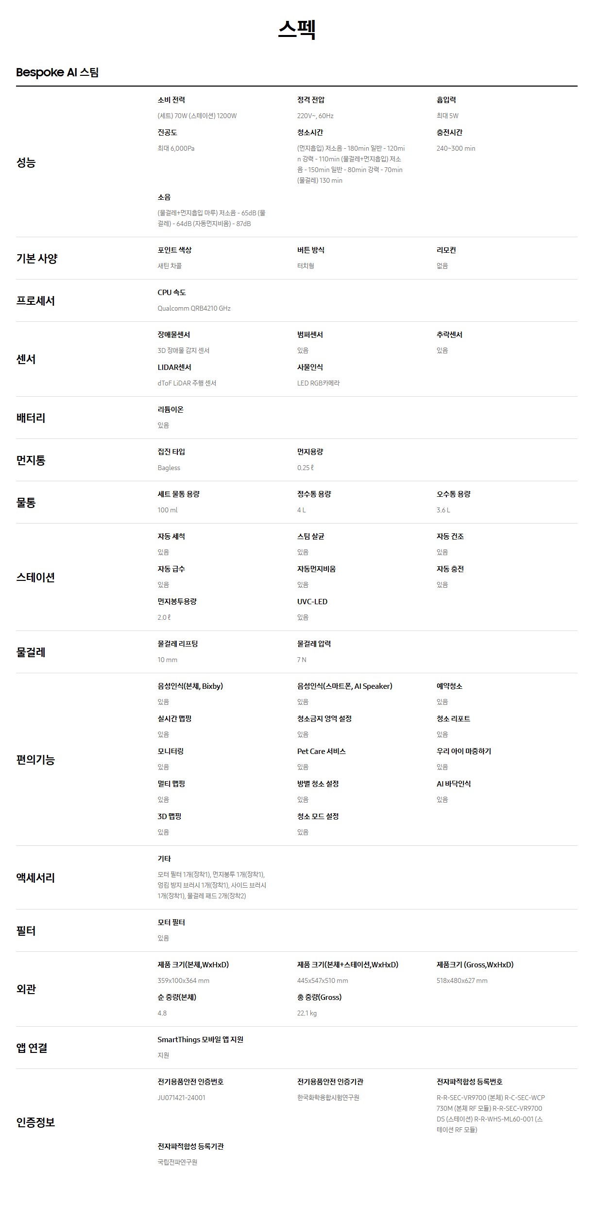 [Mega Sale][미사용/단순개봉]삼성 비스포크 AI 스팀 로봇청소기 VR7MD97716H