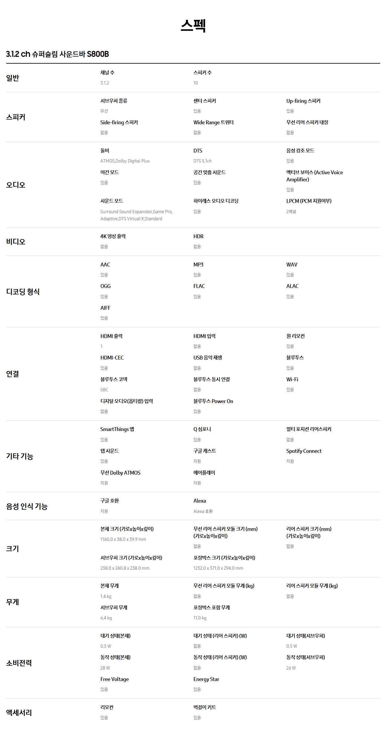 [진열]삼성 3.1.2 채널 슈퍼슬림 사운드바 HW-S800B/KR